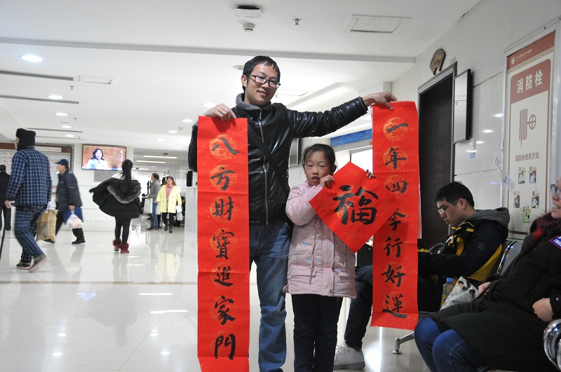 没注意查看专家坐诊时间,心仪的专家今天不坐诊,没有看成病的刘师傅心里本来有点郁闷,看到现场送春联活动后,领到春联的他心情由阴转晴:“也算没有白来,今年的春联不用买了,这个活动真好!”