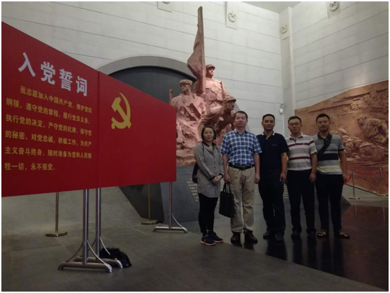 支部党员在支部书记吕国雄的带领下,冒着大雨来到位于南昌市八一大道的江西革命烈士纪念堂。进入纪念堂大门,瞻仰位于广场中央的烈士纪念碑;随后,在党支部书记的带领下,全体党员重温入党誓词、学习了解江西革命老区这片红土地上的革命先烈的丰功伟绩并合影纪念。活动结束后,大家一致表示将继续努力充分发挥共产党员的先锋模范作用,爱岗敬业,不忘初心,继续前行,认真做好本职工作,做合格共产党员。