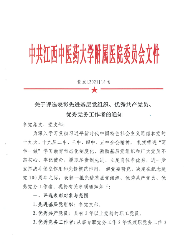 关于评选表彰先进基层党组织、优秀共产党员、优秀党委工作者的通知
