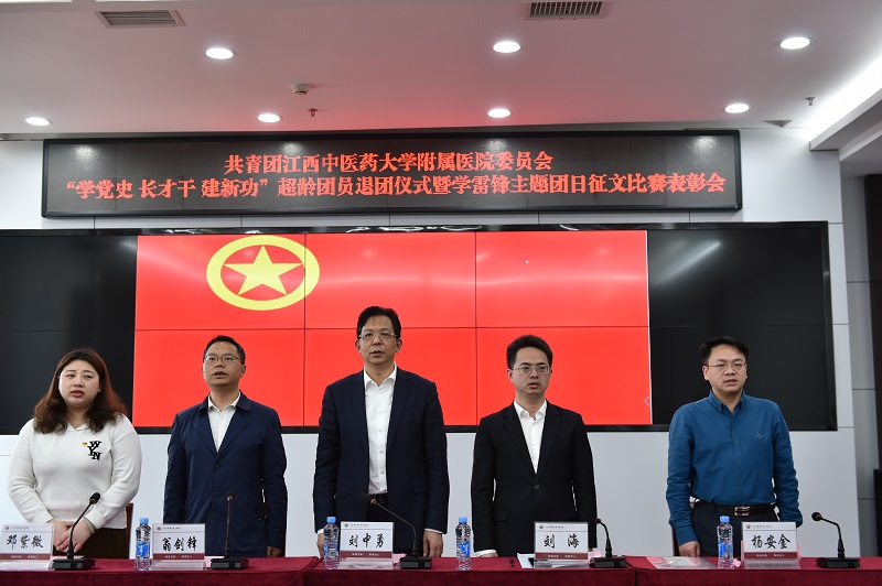 在“5.4”青年节来临之际,金瓶梅电影 团委、医务社工部于4月29日下午举办了青年节主题活动——“学党史,长才干,建新功”超龄团员退团仪式暨学雷锋主题团日征文比赛表彰会。党委书记刘中勇,临床医学院党委副书记、副院长刘海、党委副书记翁剑锋,党办、院办主任杨安金,团委书记邓紫微出席并参加本次活动。