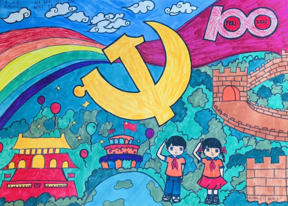 活动期间共征集了47幅由4-14岁小朋友绘制的主题作品,职工子女和爸爸妈妈一起关注党史,用眼睛观察祖国的美,用巧手描绘党的历程,用创作展现中国共产党领导下的中华儿女新面貌。一幅幅作品展现了孩子们心向党、跟党走的感情信念,树立远大理想、热爱伟大祖国、担当时代责任,努力成为德智体美劳全面发展的社会主义建设者和接班人的决心!接下请大家欣赏本次活动的十佳作品(次序按年龄排名):