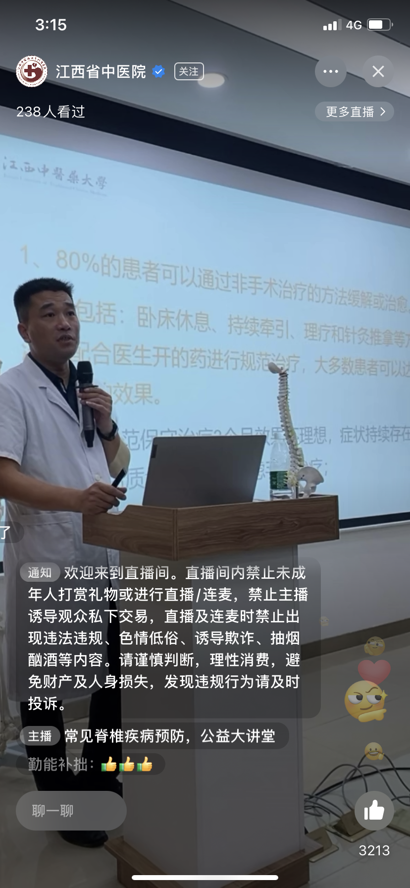 6月17日下午2点30,由康复科张衍辉主任主讲的热敏灸大讲堂第三十一期课程《常见脊柱疾病预防与治疗》,圆满结束。为更好的服务群众,方便更多群众能够便捷、简单的聆听到正规的中医药健康课程,此次热敏灸大讲堂首次采用网络直播形式,在金瓶梅电影 视频号以及金瓶梅电影 抖音号上同时开启现场直播,吸引了200余名网友在线观看。