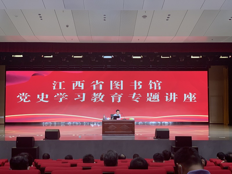 7月15日上午,机关后勤第四党支部组织党员前往省图书馆聆听江西省委党史研究室征研一处处长、南京大学历史学博士卫平光讲授题目为《百年党史中的江西红》的党史学习教育专题讲座。