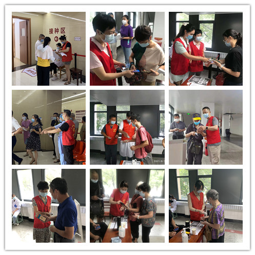 现在疫情紧张时期,几乎每日都有安排疫苗接种工作,支部做好安排,分批分时的安排党员志愿者到疫苗接种点支援,协助公卫部门帮助接种人群咨询、建档、分流、指引、维护现场秩序等各项志愿服务,确保疫苗接种工作井然有序地推进。