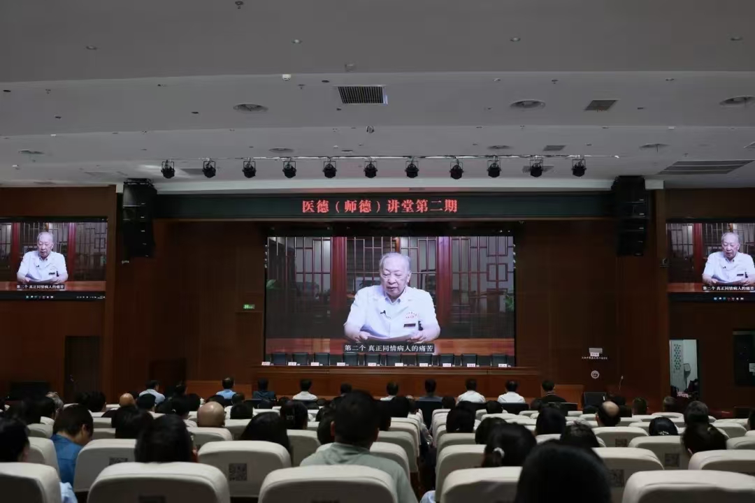 国医大师伍炳彩教授通过视频方式,为院领导及全体中层干部带来一场深刻又温暖的医德洗礼。本次活动延续首期讲堂的精神内涵,进一步引导全院医务工作者筑牢信仰、补足“精神之钙”。