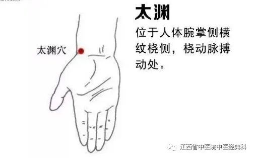 是手太阴经肺经的输穴原穴,也为八会穴的脉会,所以按揉此穴,可以调节肺的功能,达到止咳化痰,扶正祛邪的作用,也能通调人体的血脉。