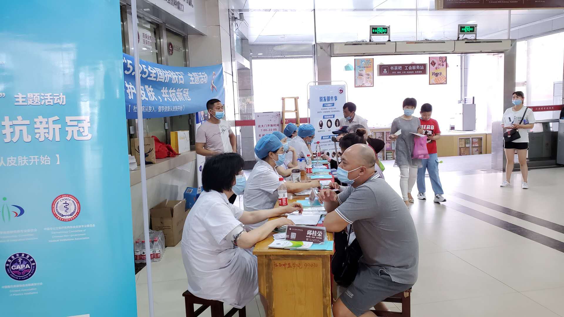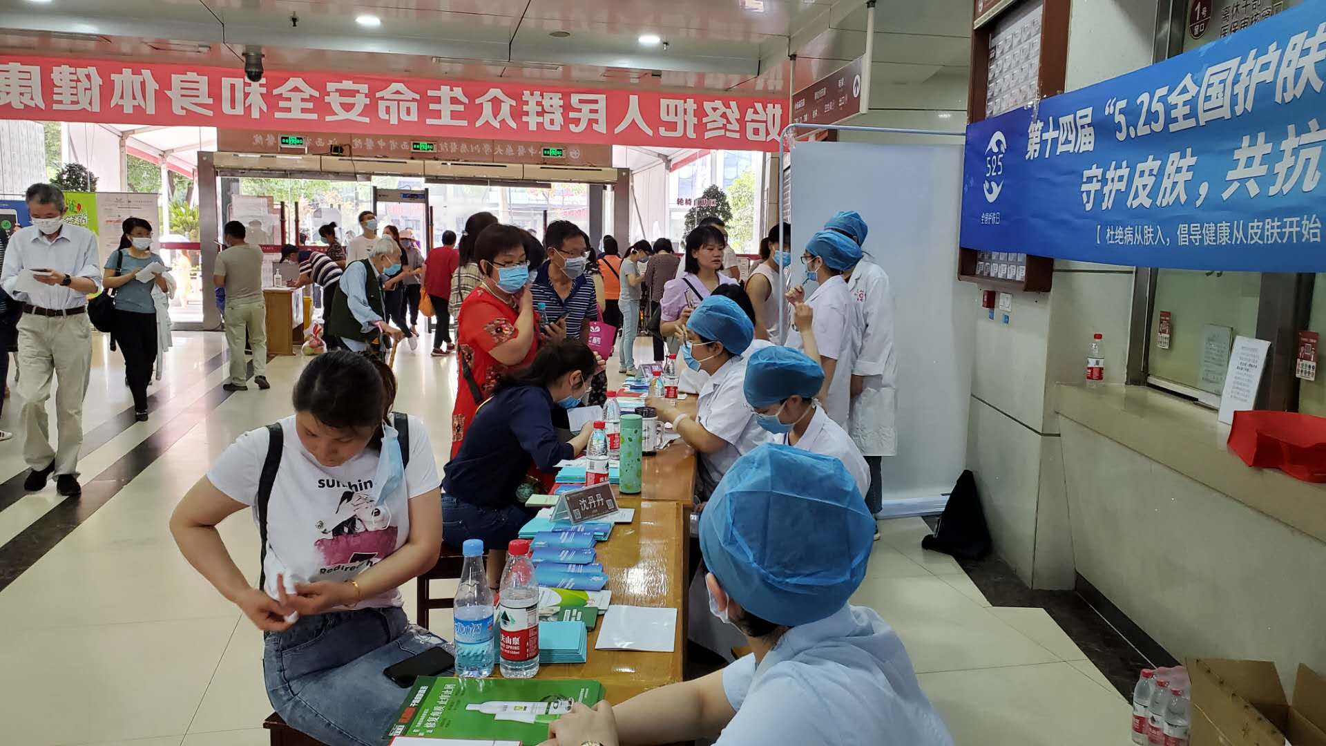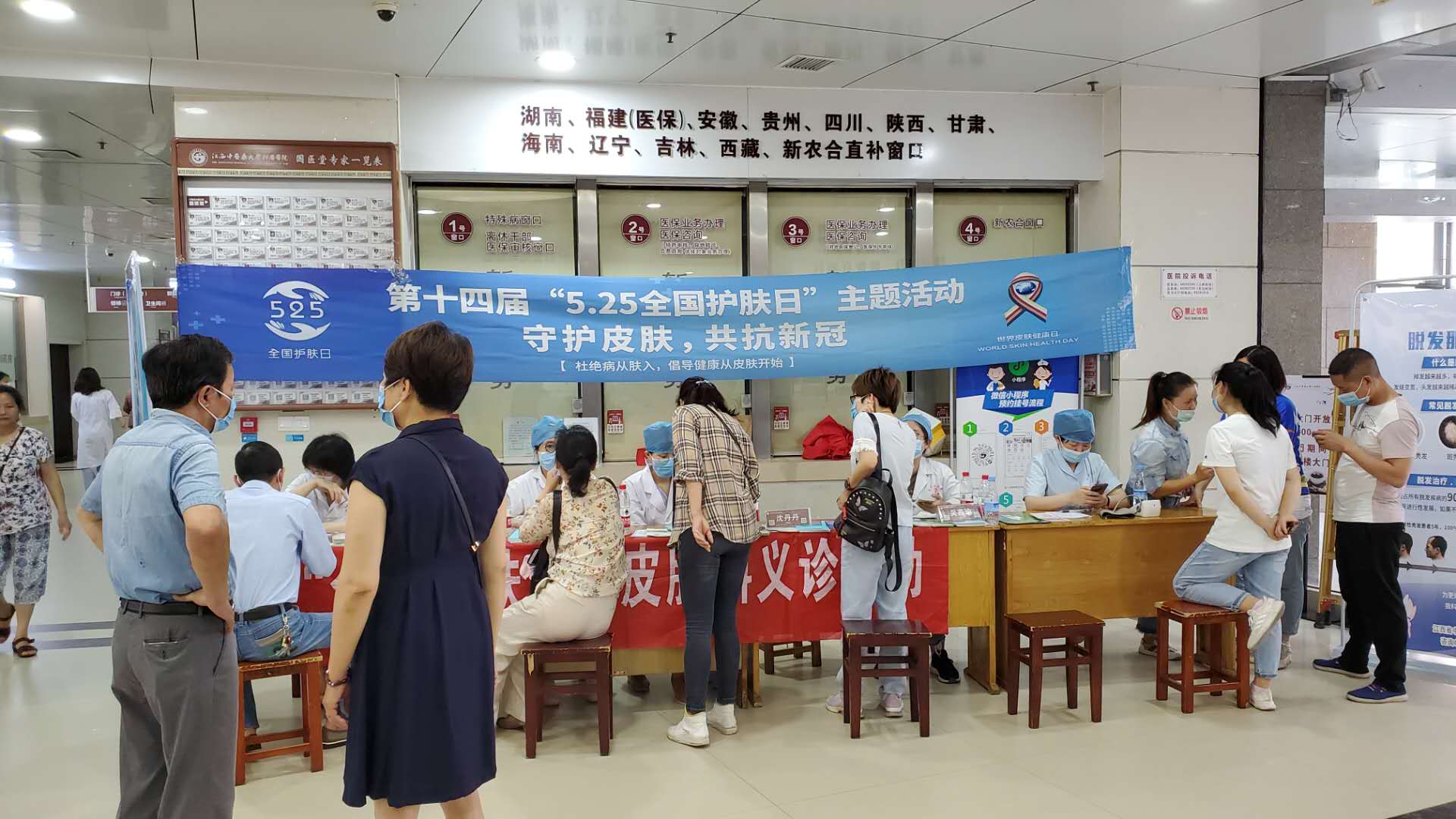 5月24日上午,在第十四届“5·25全国护肤日”即将来临之际,金瓶梅电影 皮肤科在医院1号楼一楼大厅开展了以“守护皮肤,共抗新冠”为主题的义诊活动。