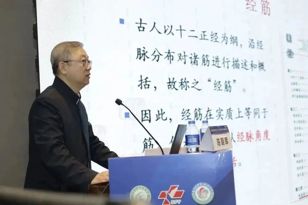 安徽中医药大学康复养生系主任、中医养生与康复研究所常务副所长、中医康复学重点学科带头人、安徽省省级一流专业建设点康复治疗学专业负责人、省级教学团队康复治疗学专业教学团队负责人、国家中管局“清宫正骨流派安徽工作站”负责人、安徽中医药大学陈朝晖教授作《经筋理论在中医康复中的研究与应用》报告