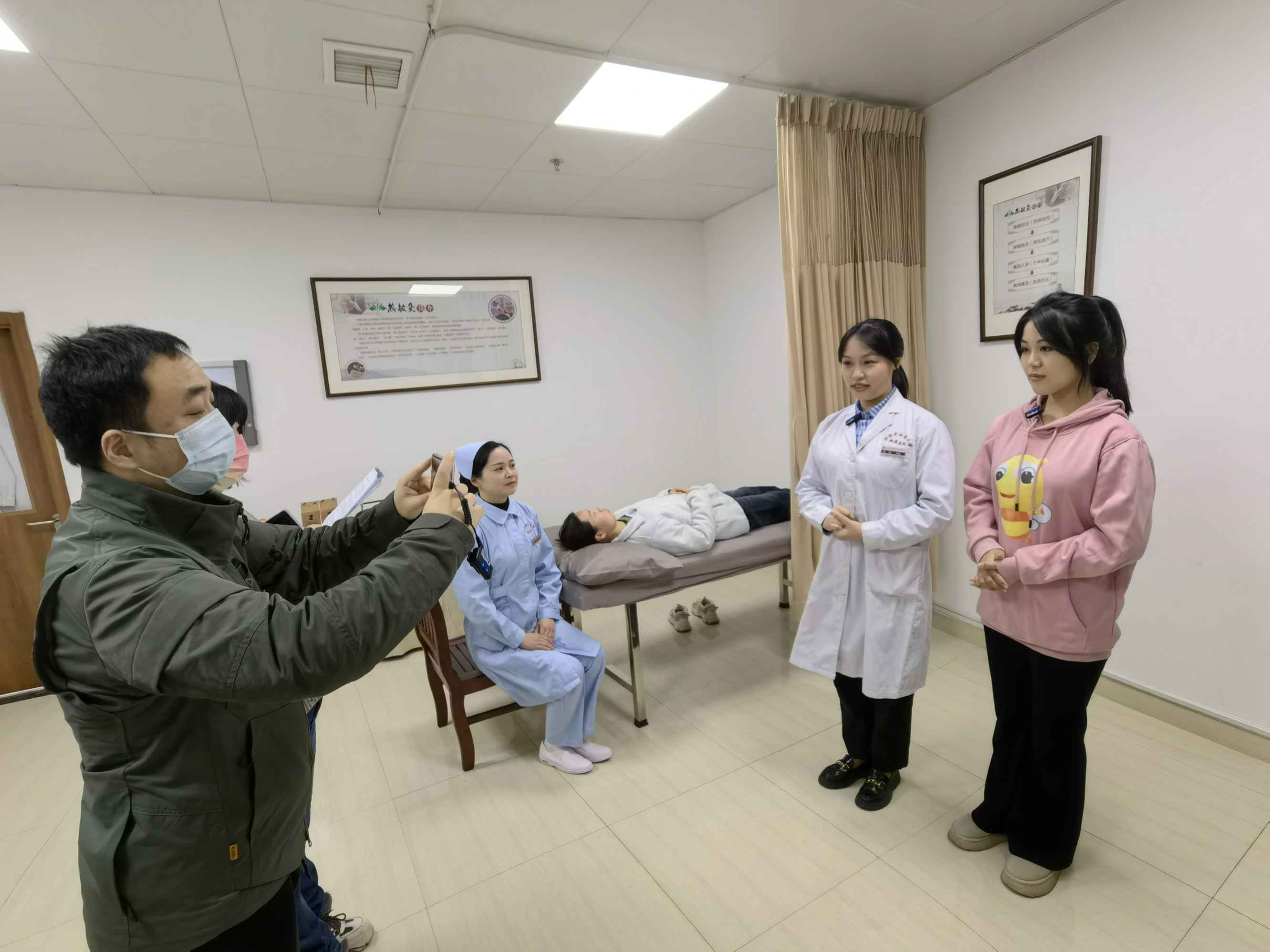 中医治疗室内妇科陆岩博士就耳部刮痧及耳穴压豆的临床功效、适用疾病、注意事项等问题向大家作了详细的解说,喻婷护士向我们展示了耳部刮痧、耳穴压豆的详细操作步骤。