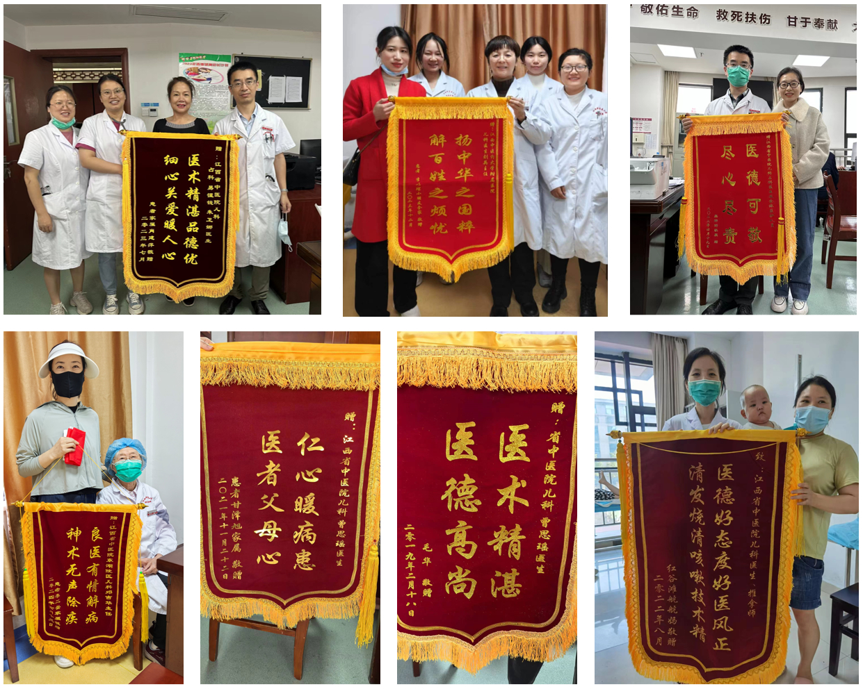 儿科始终积极引进人才,重视人才培养,自2021年以来,共引进博士研究生4人。目前,儿科医师梯队建设合理,以名老专家、中年学科带头人、青年骨干为发展框架,儿科临床医师团队共16人,均为硕士及以上学历。儿科临床医师团队集中医儿科学、中西医结合儿科学、中医学、针灸推拿学、康复学等不同专业于一体,擅长儿内科、新生儿科常见病的中西医诊疗,可为患儿提供个体化、精准化诊疗方案;儿科推拿医师团队均有5年本科+三年规培(儿科方向)及以上学习经历,或硕士研究生学历,既精通小儿推拿技术,同时熟练掌握了儿科专业知识,以手代针,以手代药,通过指间传递中医特色疗法的温度,用双手解除小儿患病的痛苦。儿科护理团队是一支充满爱心和青春活力的热血团队,作风严谨、技术精湛、甘于奉献、勇于创新,通过一次又一次有温度的服务,让患儿不再惧怕临床治疗。一份份信任,一张张笑颜、一个个拥抱、一面面锦旗……是患儿及家属对儿科团队的肯定,更是团队砥砺前行的动力。