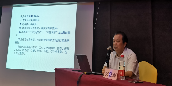 何晓晖校长为我们作题为“伤食与治未病”的学术报告,提出“广义伤食”的概念。并指出“伤食为百病之长”,因“伤食伤脾,生湿助痰,流窜脏腑经络,引发百病”,阐述了“伤食与疾病谱”联系。