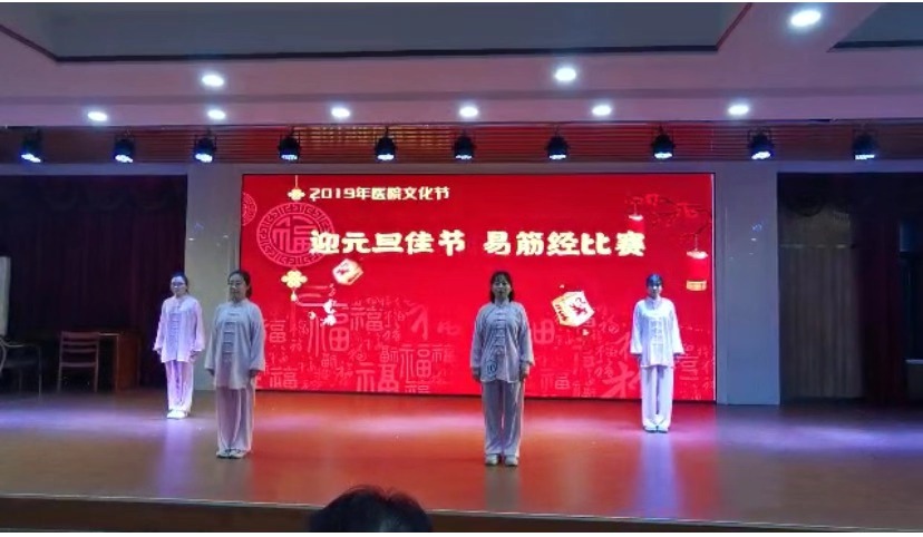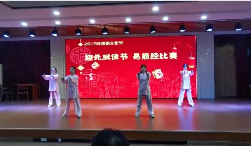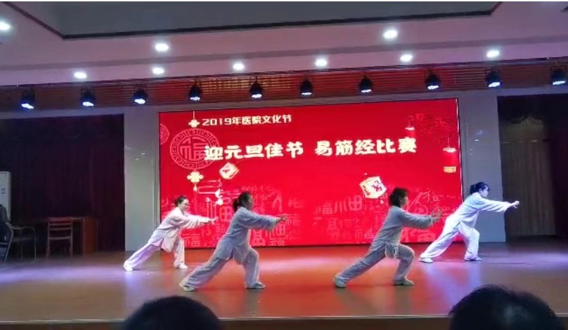我科郭艳花医生代表本科室与中医特色治疗部的同事组成一支队伍,参加了2019年金瓶梅电影 文化节之“迎元旦佳节,易筋经比赛”。
