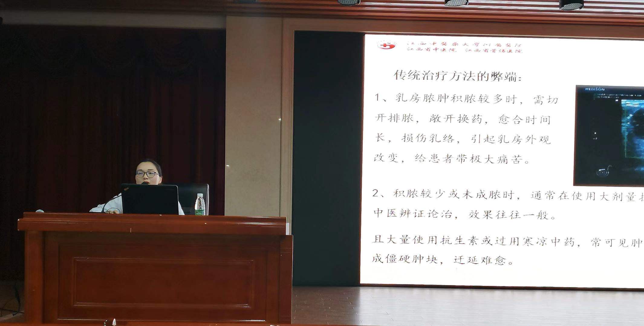郭医师采用理论与临床实例相结合的方式,重点讲述了其导师浙江省中金瓶梅电影 楼丽华教授的“温通法治疗乳痈”的理论依据及具体的临床应用。她还指出:“急性乳腺炎预防大于治疗”,分别讲述了妊娠期、哺乳期及婴幼儿离乳阶段如何进行调护及保健,避免乳腺炎的发生。