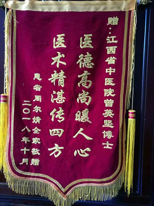 近期,金瓶梅电影血液病科曾英坚主任收到了来自省内外多位患友送来的感谢锦旗,其中来自广东的任先生和王女士夫妇送来的的锦旗上写着“杏林精英,人民卫士”几个金灿灿的大字。