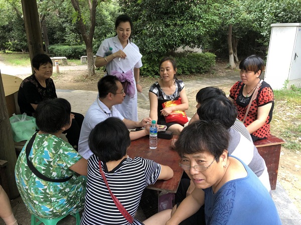 胡齐鸣书记深入社区居民家中,为其进行测血压、血糖等志愿服务;仔细询问居民的身体状况,并耐心细致回答居民关注的疾病用药问题,通过望闻问切给居民们讲授中医调理血糖的方法。