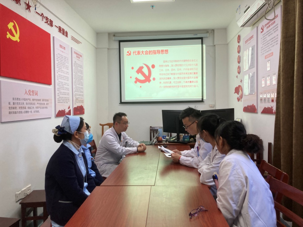 “党的十九届六中全会全面总结了建党百年来创造的伟大成就,高度凝练了党百年奋斗的重大历史意义和宝贵经验,指明了新时代党的奋斗方向。江山就是人民,人民就是江山”。支部书记曾英坚指出,坚持人民至上,并不仅仅是一句口号,更是一种号召,这就要求我们以病人为中心,坚持实事求是,要时刻牢记初心使命,既满怀信心、接续奋斗、埋头苦干、勇毅前行;同时始终保持清醒、谦虚谨慎、不骄不躁,妥善应对和抵御各种风险挑战,结合实际、抓好当前工作,以更加坚定、更加自觉、更加饱满的热情贯彻好落实好党的十九届六中全会精神。