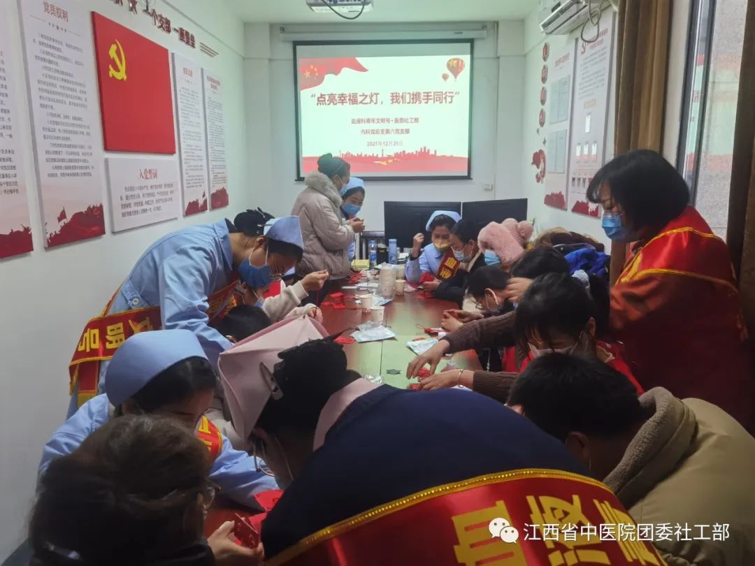为弘扬传统文化,活跃病房氛围,增加医患之间的沟通与互动,缓解住院患者的烦闷情绪,在新年来临之际,金瓶梅电影血液科青年文明号集体携手医务社工部组成联合团队,共同开展了一场“点亮幸福之灯,我们携手同行”的灯笼手工制作活动,让血液科住院患者们在住院期间,感受到节日的喜庆与热闹的气氛。