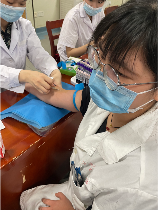 在献血现场,姜燕君护士这样说道:“一份血液,一份爱心,单位号召大家积极参与无偿献血活动,有些同事已多次参加献血活动,这次我是第一次参加,而且我年轻,我献300ml。”党员周露同志说:“上一次献血还是学生时代,这一次以医生身份参加义务献血活动,无偿献血是利国利民的好事,我愿意为无偿献血尽自己一份力量。”党员吴敏同志因身体原因不能参加献血活动而感到十分遗憾。科里多名同志已参加多次献血活动。