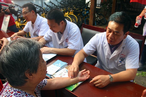 为深入开展“两学一做”学习教育,发挥党员模范带头作用,金瓶梅电影内科第五党支部(肾病科)于2018年7月26日在墩子塘街道卫生办马家池社区组织开展党员进社区义诊活动,活动由党支部书记吴国庆带队,共计有9名党员组成义诊服务队。