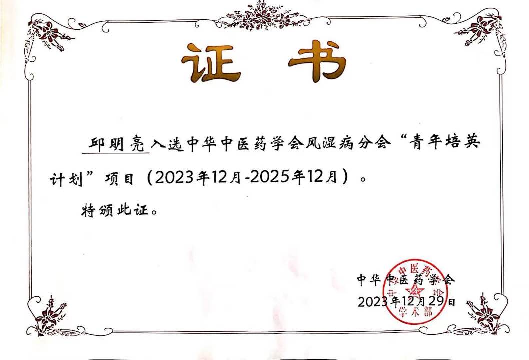 热烈祝贺金瓶梅电影 (金瓶梅电影 )风湿病科副主任邱明亮入选首届中华中医药学会风湿病分会“青年培英计划”
