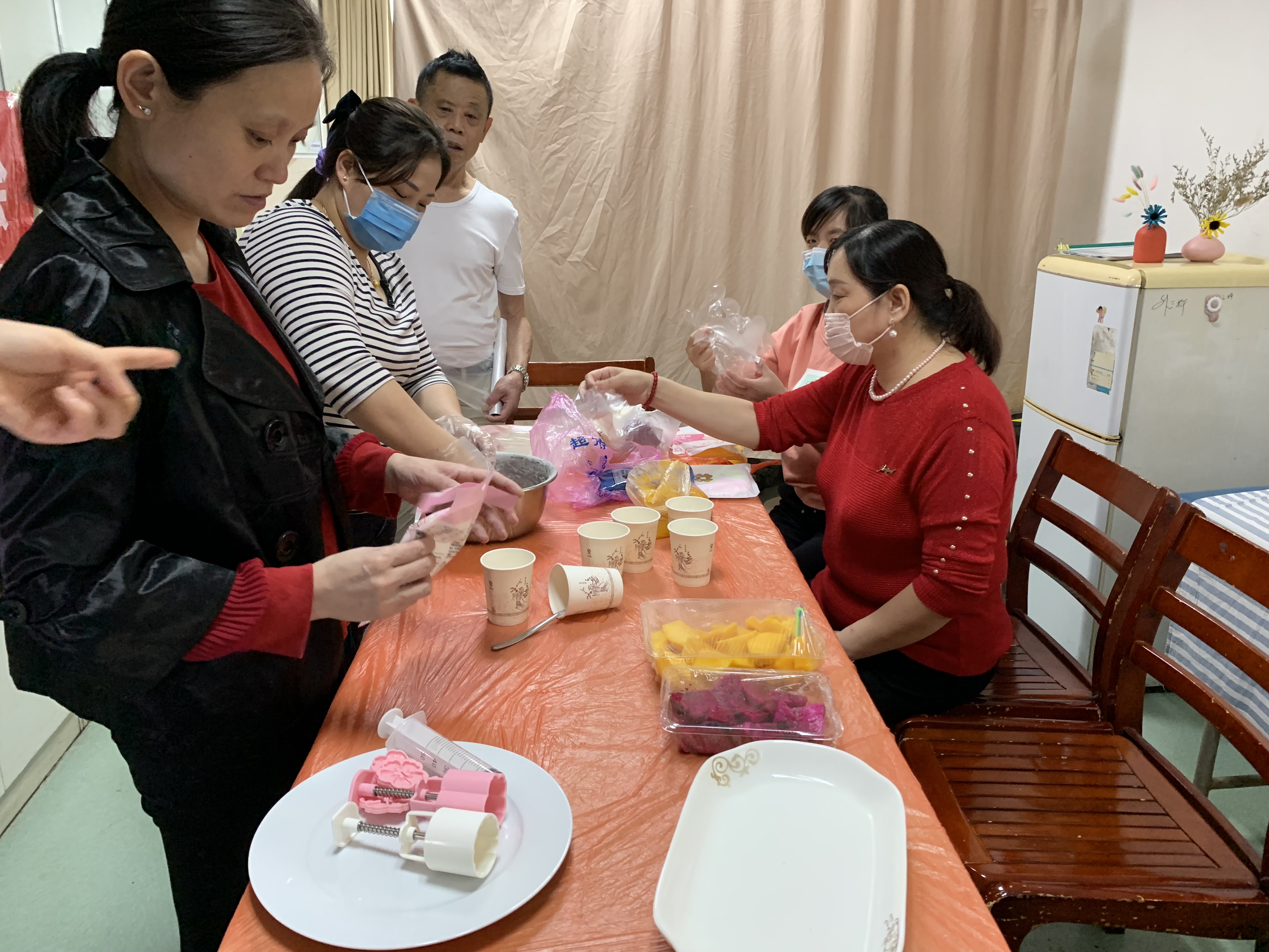 首先护士为大家详细讲解并示范了月饼的完整制作过程。大家按照这个方法边学边做。
