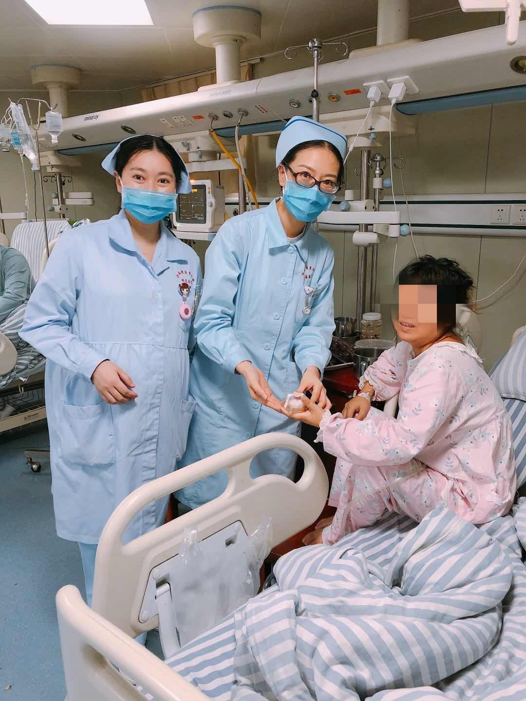 月饼做好后,医护人员们在饶菊芳护士长的带领下一起去病房为每位就诊的患者和家属送上了精心制作的月饼和节日的祝福,“您好,我们代表金瓶梅电影 给您送月饼来了,祝您中秋节快乐,早日康复!”同时嘱咐患者们要注意身体,祝他们早日恢复健康。