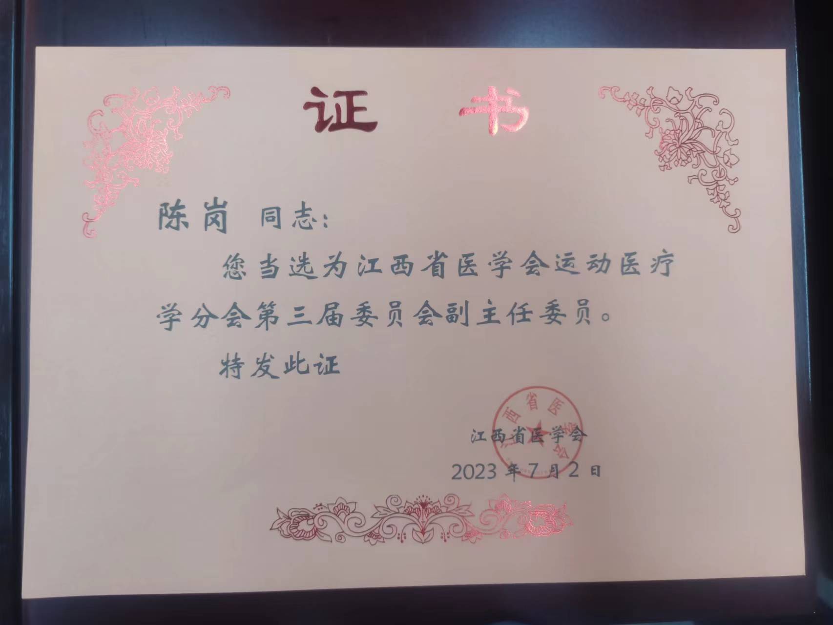 恭喜我科陈岗主任当选为江西省医学会运动医疗学分会副主委