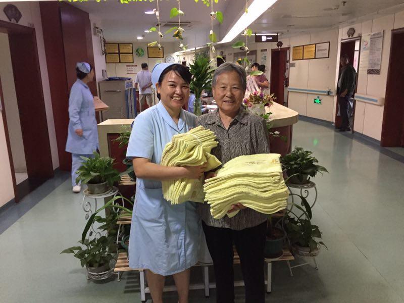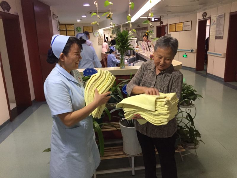 在住院期间,一天中午她经过骨伤四科护士站时,发现护士们放弃午休的时间,正在忙碌地缝制“热奄包包扎袋”。她这才想起来她用热奄包治疗时,也用了这种包扎袋。这种包扎袋能很好地把热奄包固定在治疗部位,利于治疗,而且是免费提供给患者的。当时,她就被感动了,结合自己在做热奄包治疗时的体会,她暗下决心,等自己病好了一定亲自给骨伤四科缝制些更好的“热奄包包扎袋”,更利于患者的治疗,同时也好让这些护士们多点休息时间。