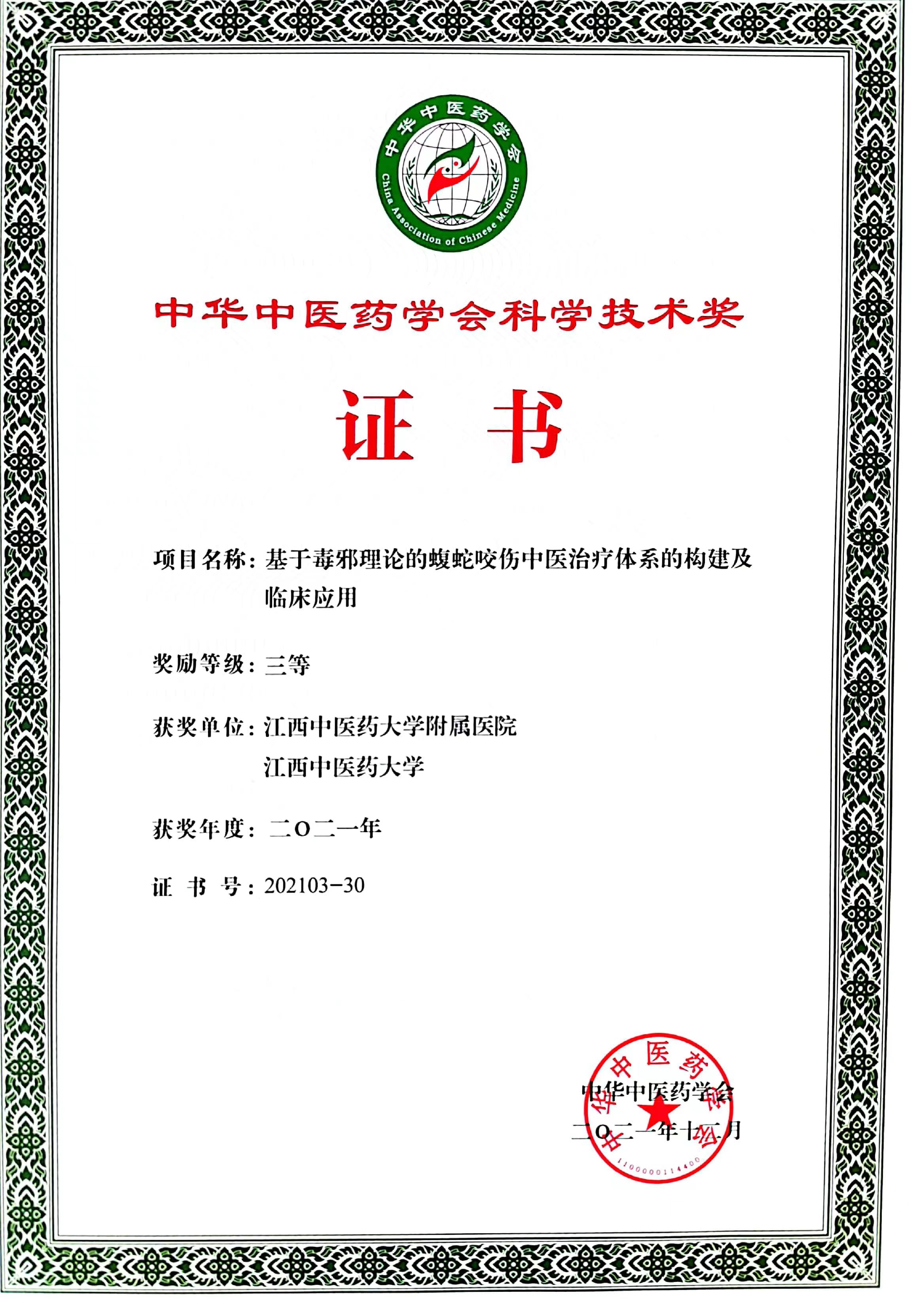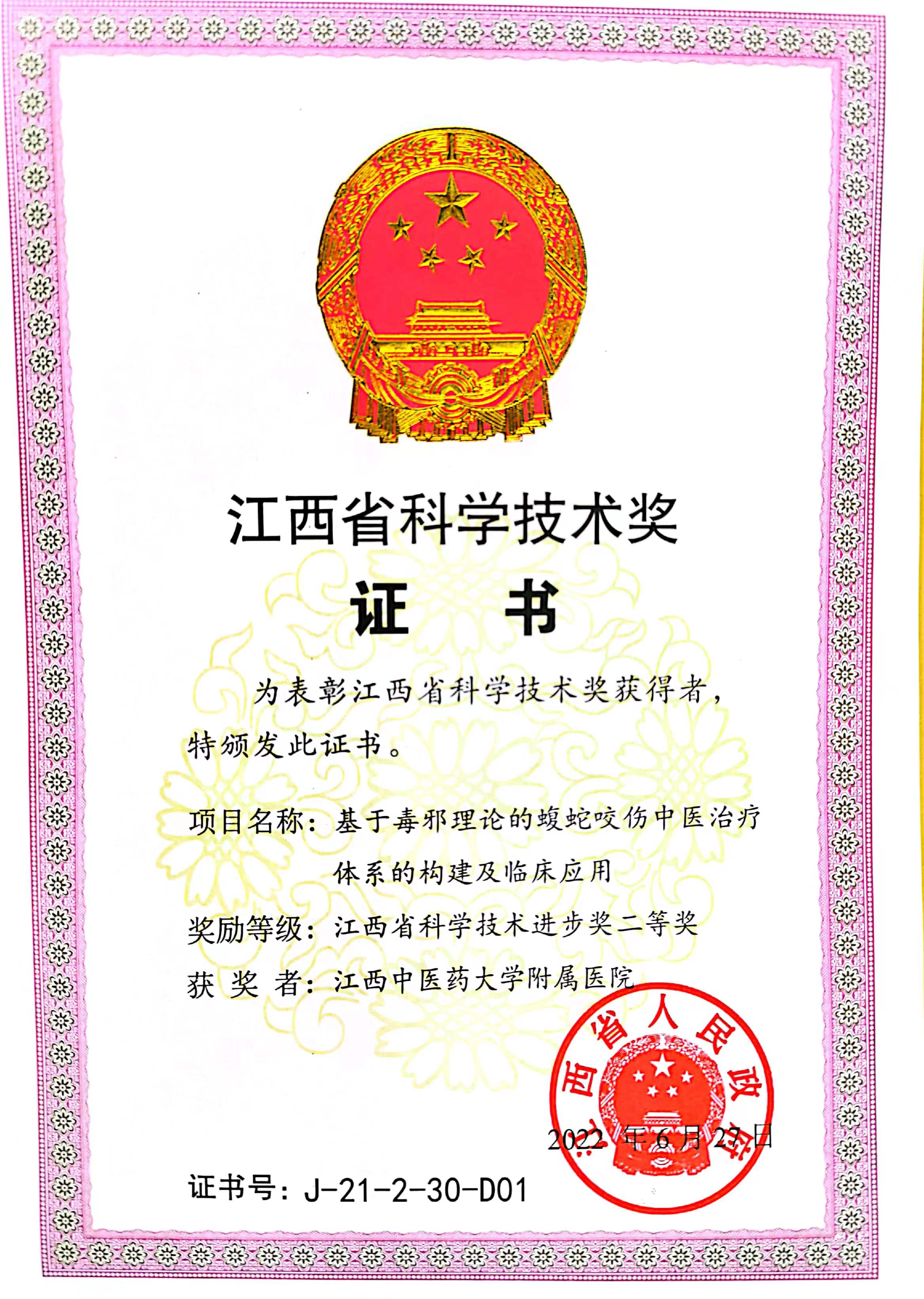 科室先后主持国家自然科学基金5项,国家行业专项1项,国家科技支撑项目(横向)2项,省部级课题8项,厅级课题10项。荣获江西省科技进步二等奖和三等奖各1项、江西省教育厅科技成果二等奖1项、中华中医药学会科学技术三等奖2项。