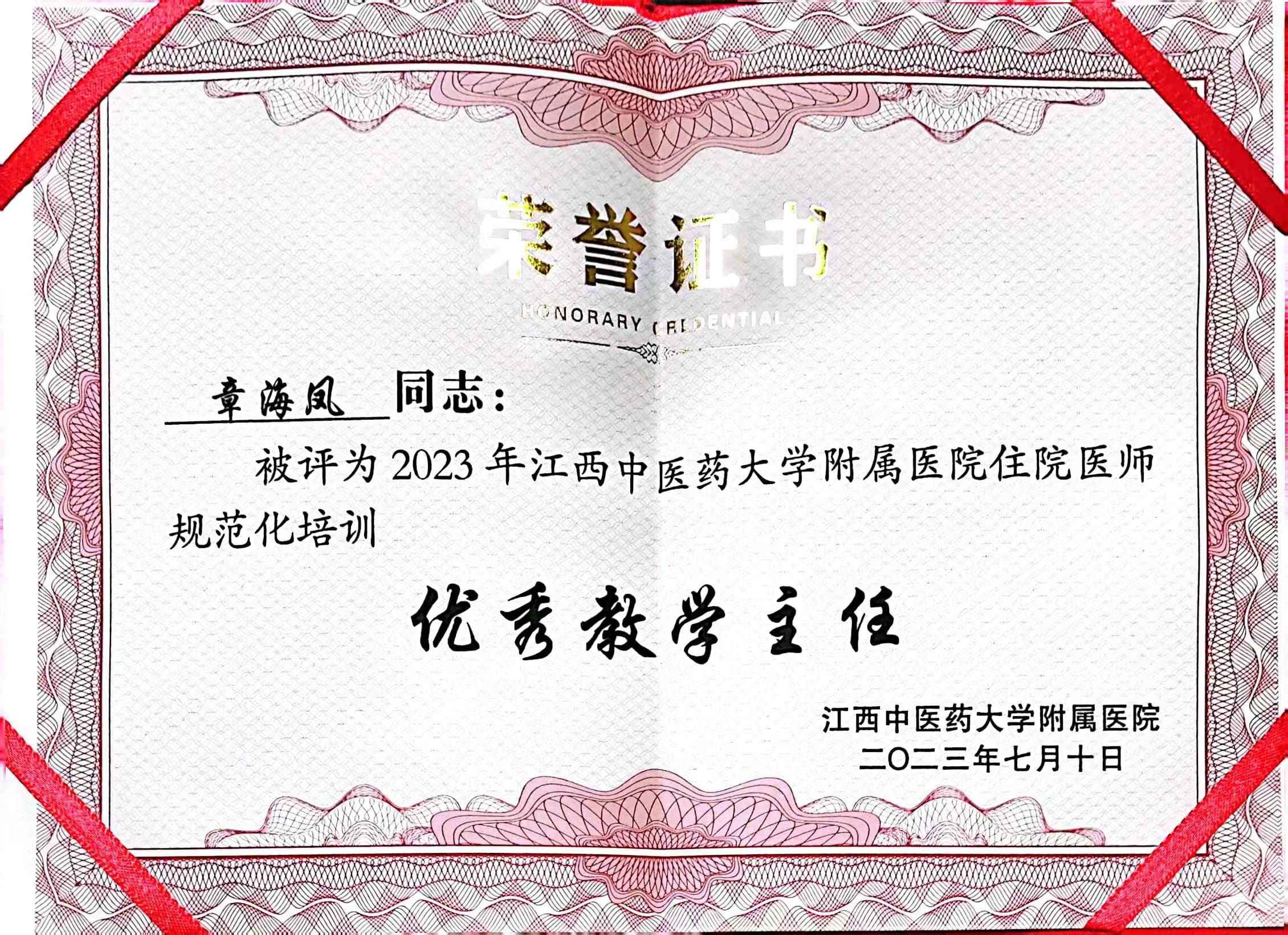 我科科主任章海凤被评为 2023 年金瓶梅电影 住院医师规范化培训优秀教学主任 发布时间:2023-09-07点击次数:12615次 热烈祝贺我科科主任章海凤被评为2023年金瓶梅电影 住院医师规范化培训优秀教学主任!