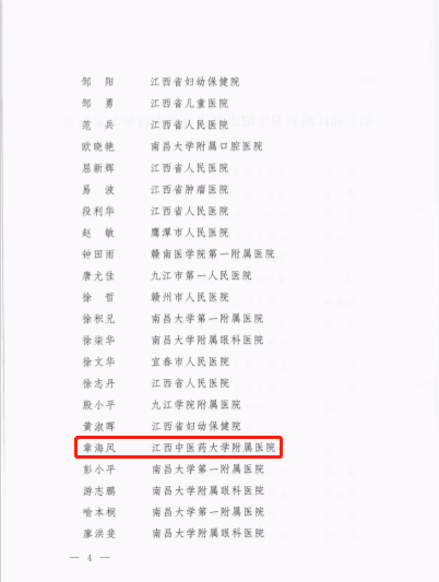 我科科主任章海凤入选第七届江西省卫生健康突出贡献中青年专家