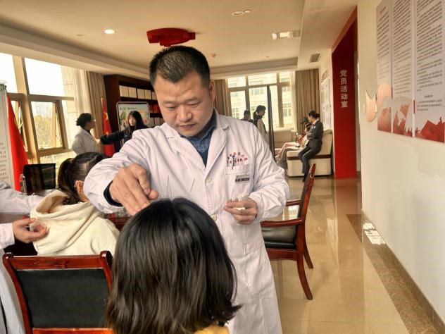 义诊活动由针灸一科、推拿科、康复一科、健康管理体检中心等多学科的医学专家组成,医疗团队专业且全面。首先,由尧斌主治中医师介绍了中医穴位养生保健方面的专业知识,详细讲解了颈椎病、腰椎间盘突出、肩周炎、膝关节痛、内分泌紊乱、失眠、焦虑等10余种机关同志关心的身心疾患的防治方法。