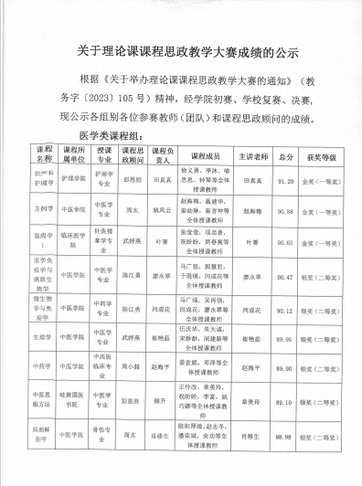 颜纯钏同志在江西中医药大学理论课课程思政教学大赛中荣获三等奖! 发布时间:2024-03-05点击次数:26042次 热烈祝贺颜纯钏同志在江西中医药大学理论课课程思政教学大赛中荣获三等奖! 详情见下方附件: "关于理论课课程思政教学大赛成绩的公示1"