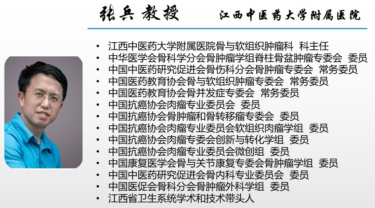 张兵,主任医师,硕士研究生导师,江西省骨与软组织肿瘤科学科带头人,江西省卫生系统学术和技术带头人,从事骨与软组织肿瘤专业30余年,于2018年创立金瓶梅电影 (金瓶梅电影 )骨与软组织肿瘤科。在江西省内率先独立开展骨盆、骶骨肿瘤切除与重建术,全股骨、全肱骨、全肩胛骨肿瘤切除与重建术,3D打印假体置换术,膝关节、肩关节外切除与重建等复杂手术。创新性地开展经耻骨入路切除盆腔、盆底巨大肿瘤的手术方式。运用综合技术(如骨重建、皮瓣修复、血管移植重建技术等)治疗复发性难治性恶性肿瘤,取得了显著疗效。在江西省内率先开展肿瘤型人工反肩关节置换、肘、腕、踝等关节置换进行保肢手术,经典型骨肉瘤的保肢率达90%以上(达国内领先水平),特别是对于儿童恶性骨肿瘤,采用生物学重建、可延长型假体等技术进行保肢,取得了良好的效果。对于巨大的或复发性软组织肉瘤,采用皮瓣、血管移植重建技术进行保肢。对于骨转移瘤患者,根据患者的机体状况、肿瘤病理学类型、病变累及范围(临床分期)和发展趋势,采取多学科综合治疗模式(MDT模式),有计划、合理地制定个体化全身治疗为主综合治疗方式,包括:系统治疗(化疗、分子靶向、免疫)、手术、放疗、粒子植入、射频消融、冷冻、中医药等方法,引入精准、微创治疗理念,取得了十分优良的临床疗效,改善了患者的生活质量,延长了患者的生存期。