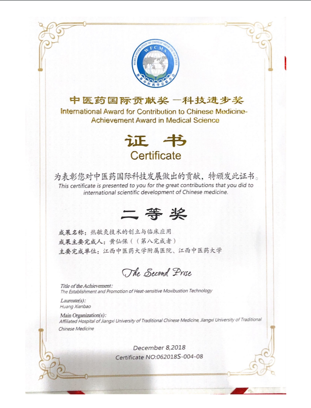 荣誉:获江西省科技进步二等奖1项、中医药国际贡献奖——科技进步奖二等奖1项、第五届中国“互联网+”大学生创新创业大赛金奖1项。2020年2月在全国率先进入隔离病房应用热敏灸治疗新冠肺炎患者,取得了显著的临床疗效,并驰援湖北省蕲春县人民金瓶梅电影 实现新冠肺炎清零目标,为发挥中医灸法优势防控新冠疫情作出了重要贡献,荣获优秀抗疫医师、抗击疫情荣誉个人等称号。