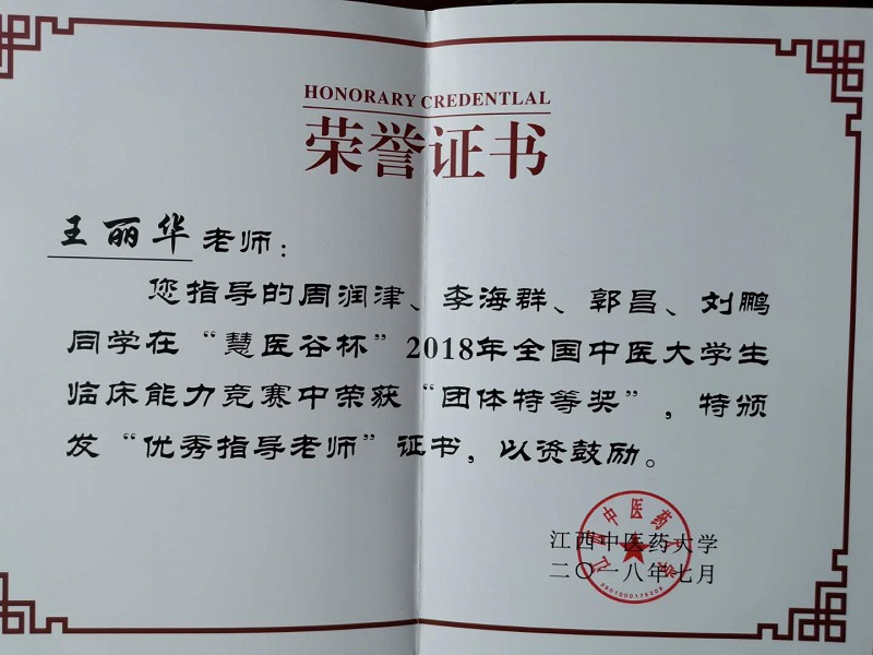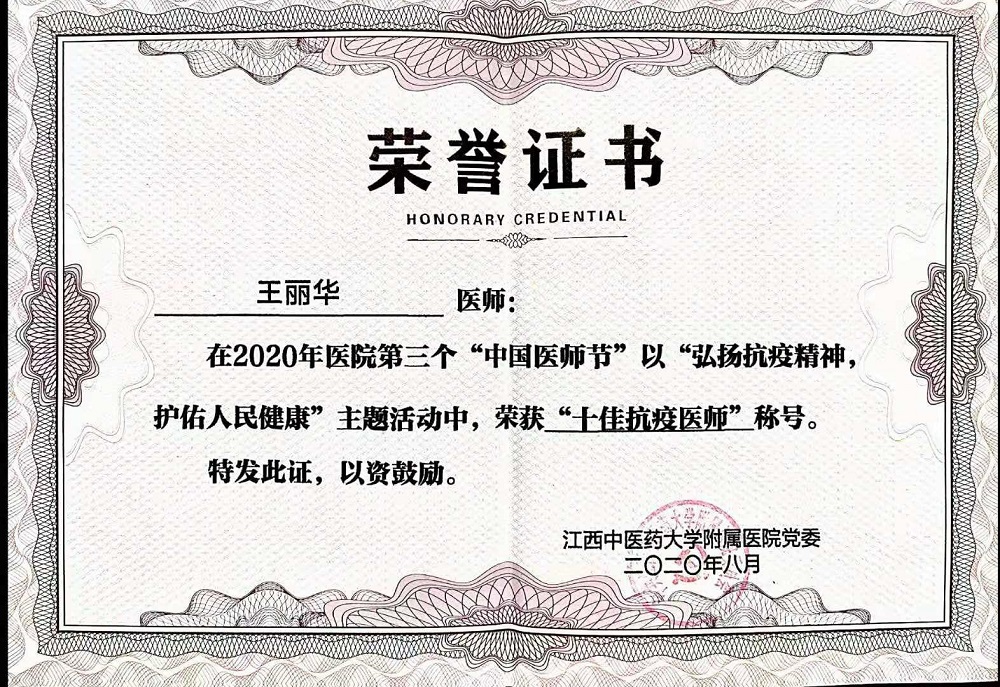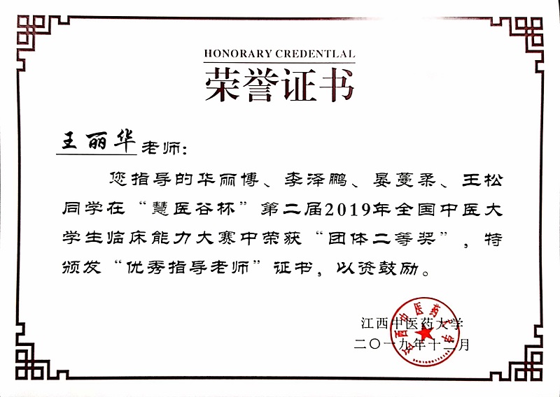 王丽华,女,主任医师,博士生导师,医学博士,为第四批全国老中医药专家学术经验继承人,师从国医大师洪广祥。擅长呼吸系统疾病的中西医诊治,如肺癌、肺结节、哮喘、慢性阻塞性肺疾病、肺心病、呼吸衰竭、急慢性咳嗽、肺间质纤维化、支气管扩张症、胸腔积液、肺部感染、重症肺炎等,在失眠、盗汗、肿瘤术后及慢性虚弱性疾病的中医调治方面具有丰富的诊治经验。2017年获金瓶梅电影 首届教学查房第一名,2017-2018年参与指导学生、青年教师全国性比赛均获得前三佳绩,2018年获金瓶梅电影 首届“十佳医生”称号,2020年获金瓶梅电影 “十佳抗疫医生”称号。近年参编著作2部,发表论文30余篇,其中核心期刊论文8篇,主持参与国家级、省部级、厅级课题20余项。目前为中华医学会肺系病分会青年委员会委员,中国医师协会中西医结合医师分会呼吸病委员会委员,江西省中医药学会肺系病分会常务委员,江西省保健学会重症肺癌分会常务委员。