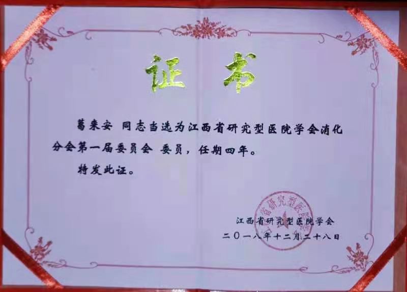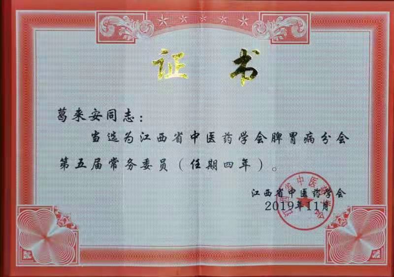 葛来安,男,1968年11月出生,科主任,教授,主任中医师,医学博士,博士生导师。先后毕业于江西中医药大学和南京中医药大学,现为金瓶梅电影 消化一科(脾胃肝胆一科)主任,教授,主任中医师,博士,博士研究生导师,江西省卫生系统学术和技术带头人,江西省国医名师何晓晖教授脾胃学术经验传承人。主持国家自然科学基金1项,参与国家级及省厅级科研课题10余项,发表学术论文80余篇,主编及参编医学论著11部。现任中国未来研究会中医药一体化发展分会副会长,中华中医药学会脾胃病分会委员,中国中西医结合学会消化系统疾病专业委员会委员,中国民族医药学会脾胃病分会常务理事,中国医促会中西医结合消化病分会委员,世中联消化专业委员会理事。江西省中医药学会肝病分会主任委员,江西省中西医结合学会消化系统疾病专业委员会副主任委员,江西省中西医结合学会消化内镜专业委员会副主任委员,江西省中医药学会金瓶梅电影 管理分会副主任委员,江西省中医药学会中医治未病分会常务委员,江西省医学会肝病分会脂肪肝学组副组长。