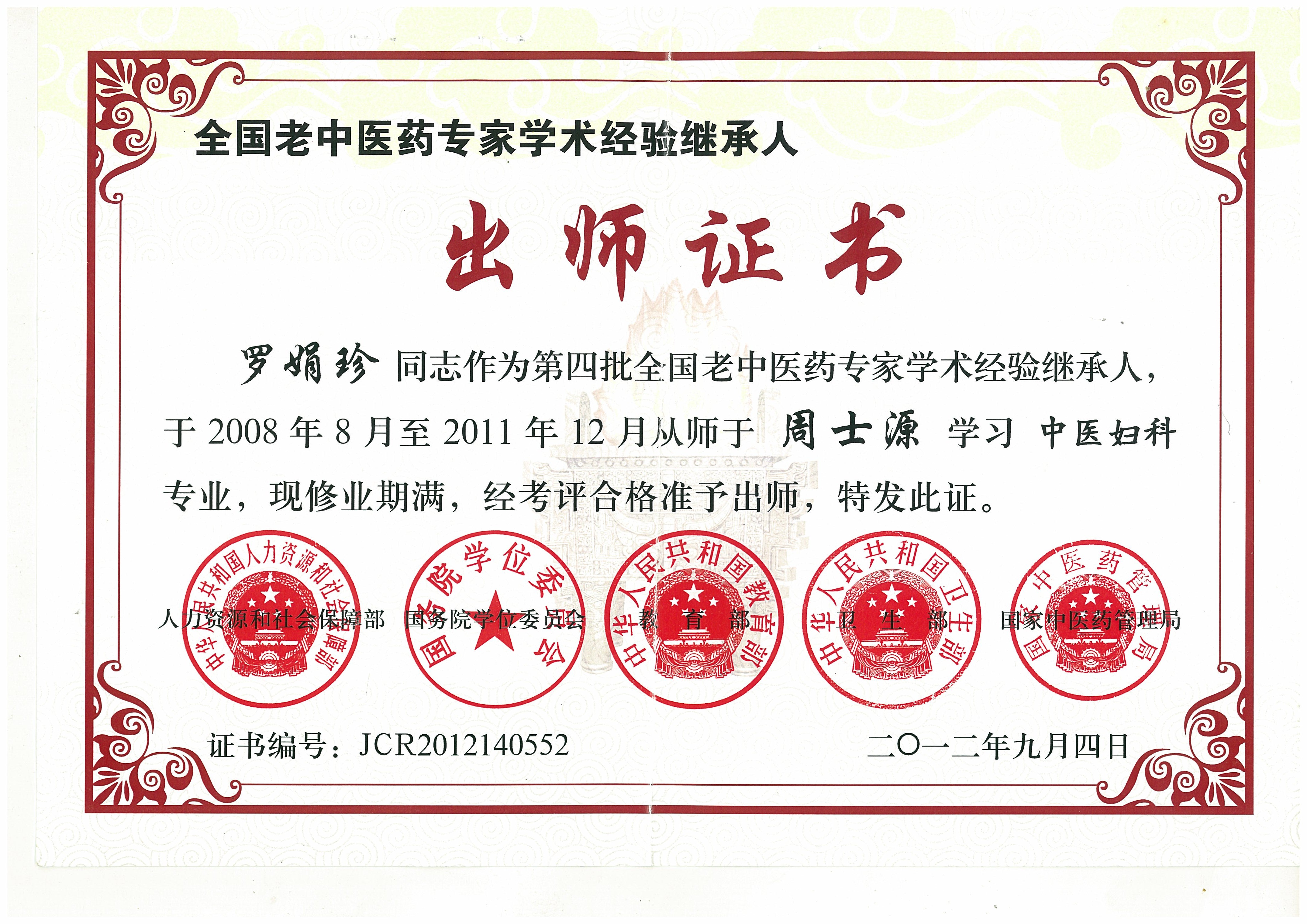 罗娟珍,主任中医师 ,医学硕士,硕士生导师。是第四批老中医药专家周士源教授学术经验继承人、金瓶梅电影 优秀高级医师。