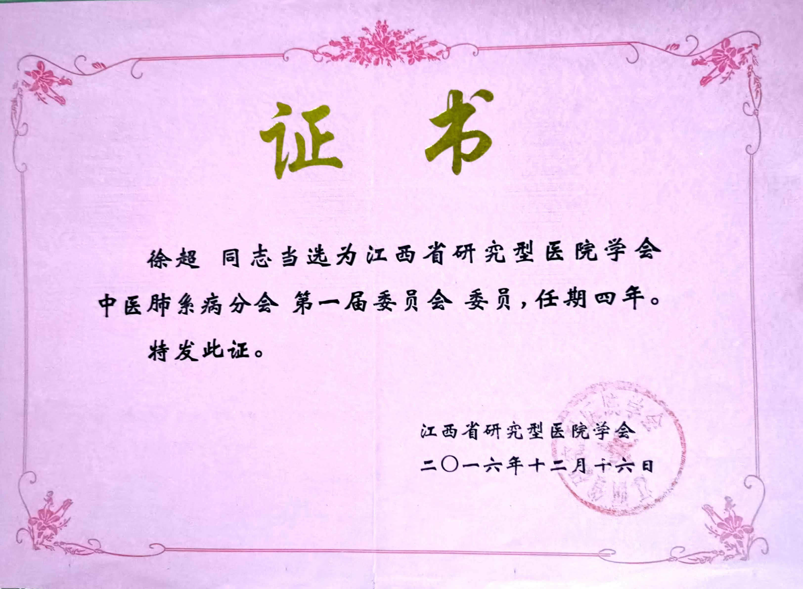 江西省研究型金瓶梅电影 学会中医肺系病分会委员