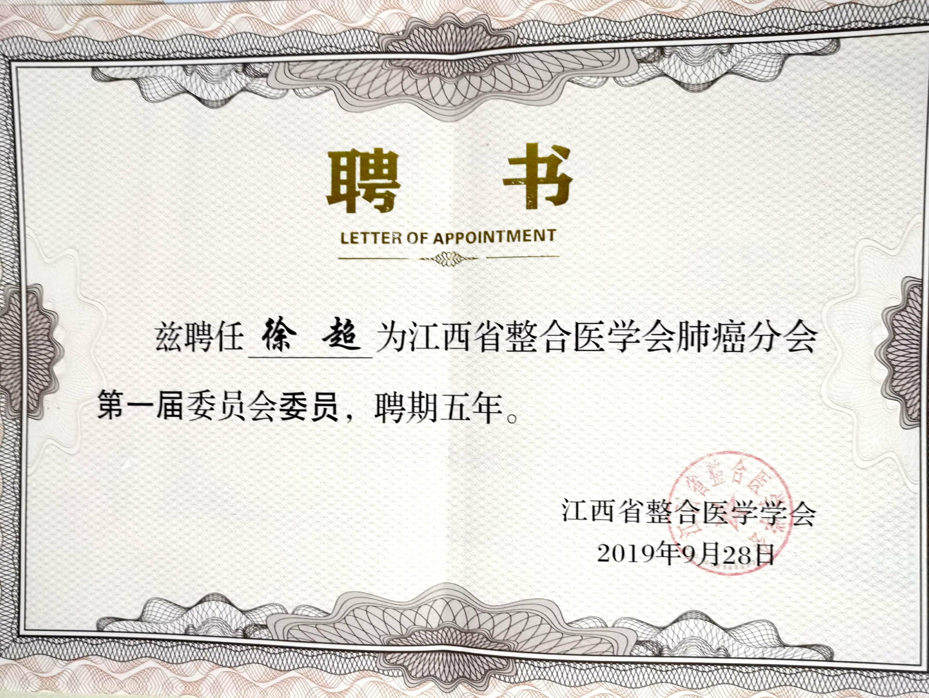 江西省整合医学学会肺癌分会委员