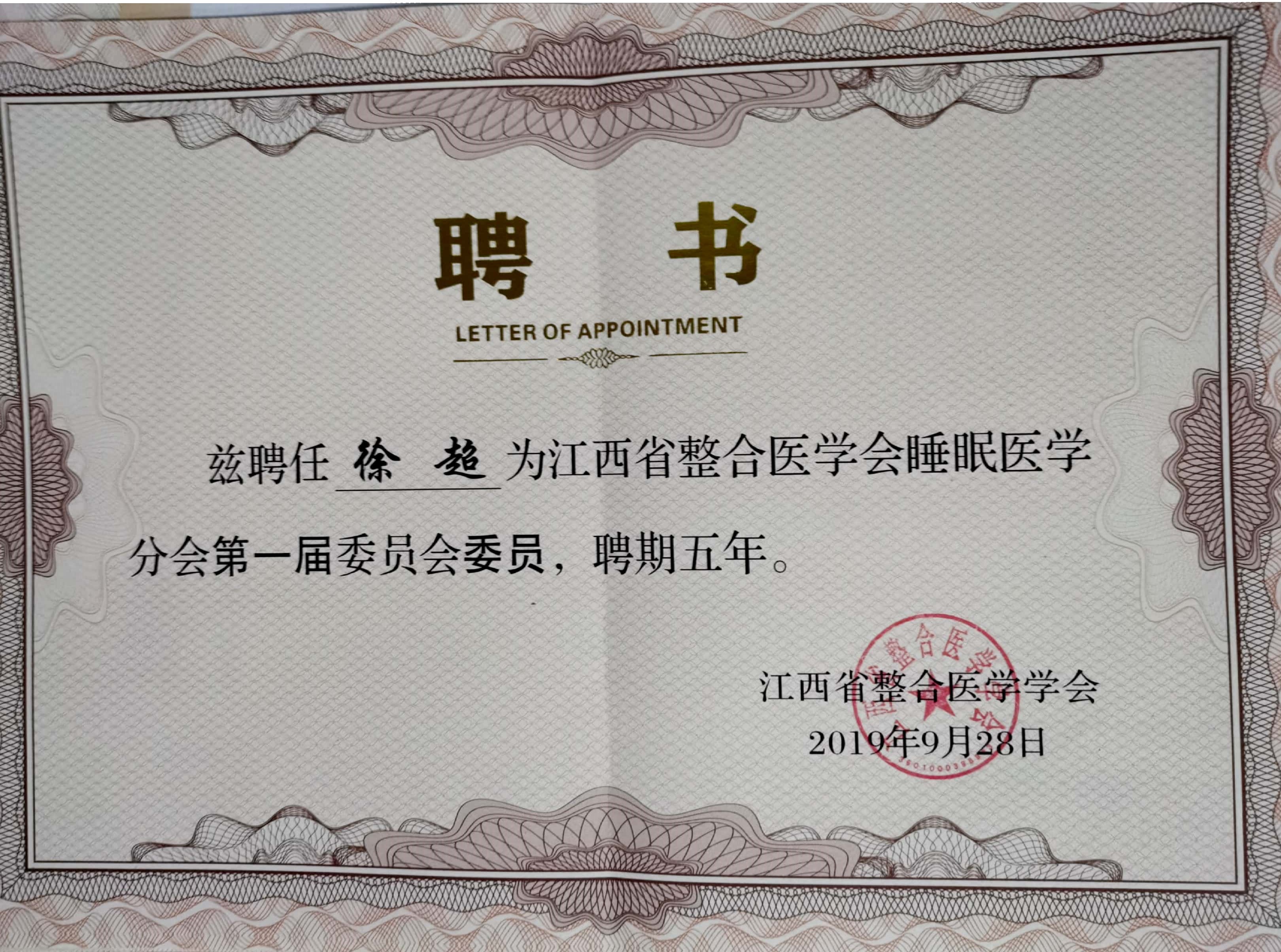 江西省整合医学学会睡眠医学分会委员
