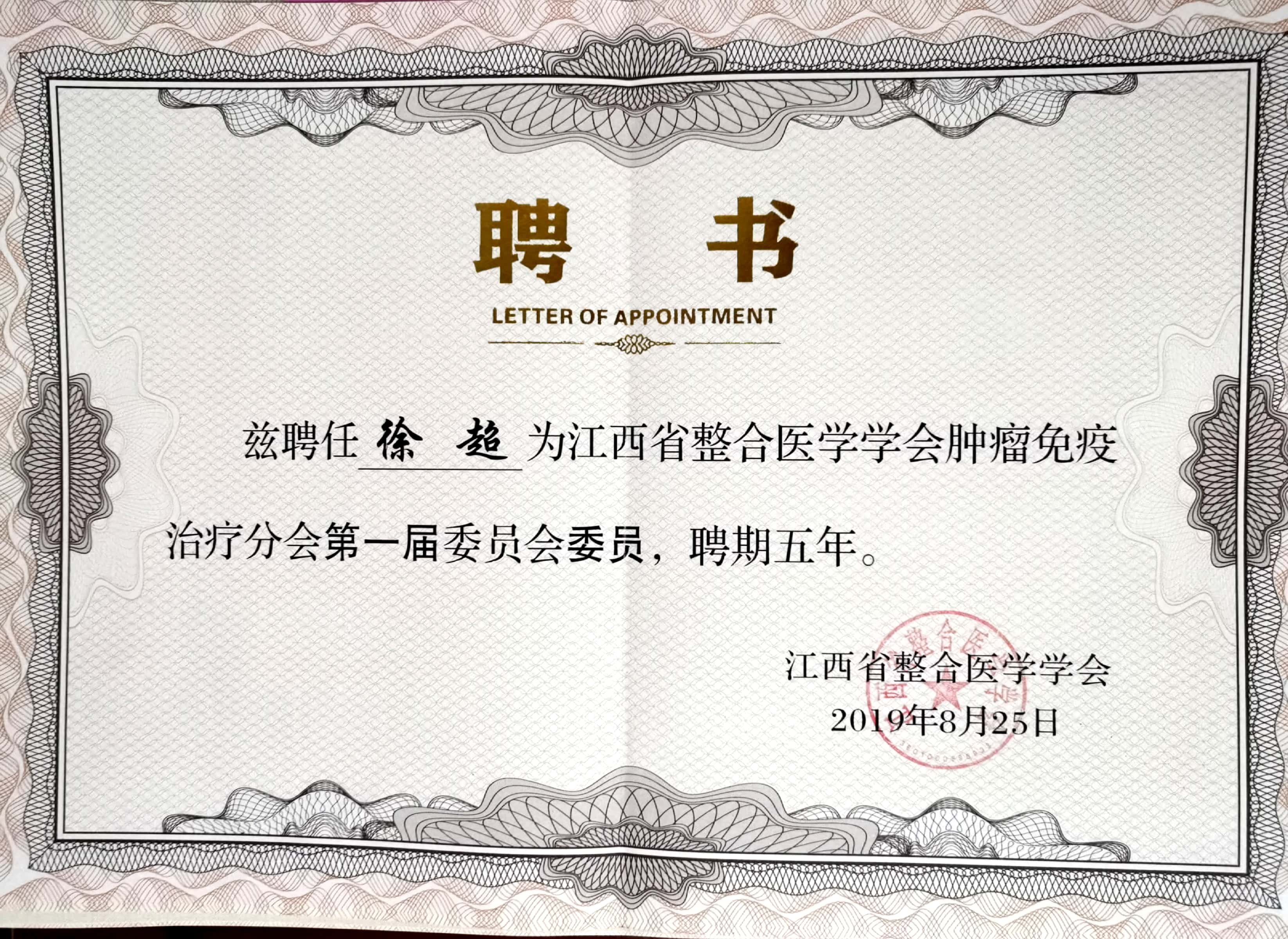 江西省整合医学学会肿瘤免疫治疗分会委员