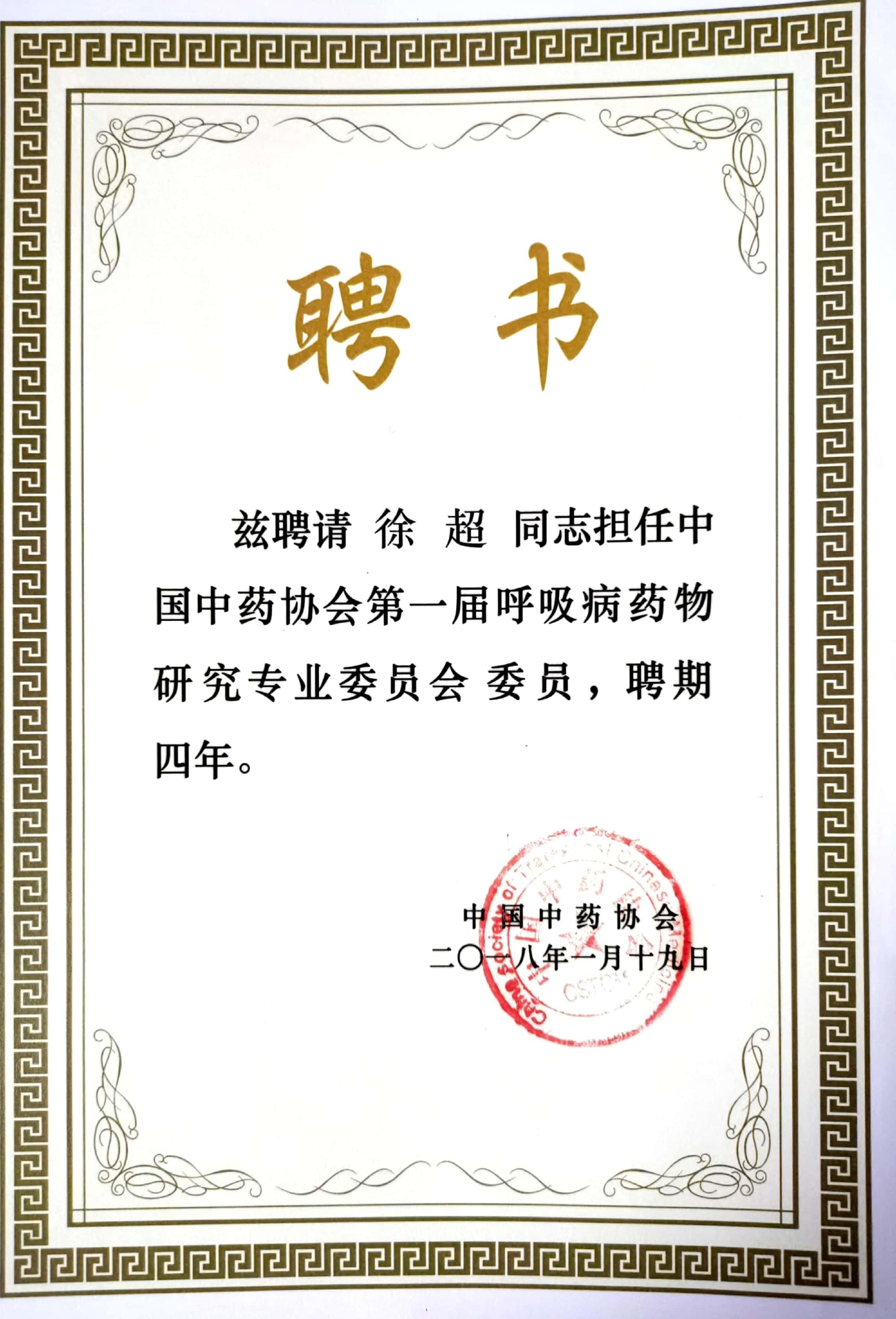 中国中药协会呼吸病药物研究专业委员会委员