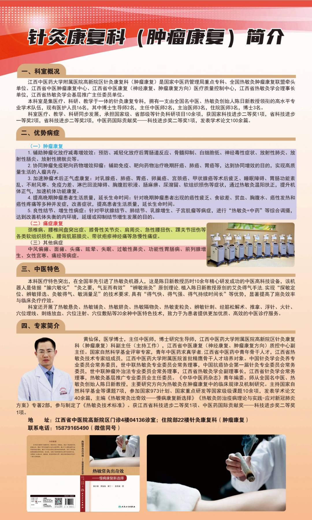 针灸康复科(肿瘤康复)主任黄仙保表示:“肿瘤康复已日益成为癌症治疗“下半场”的重要组成部分,手术、放、化疗、靶向、免疫等治疗方式在杀伤或消除肿瘤的同时,也不可避免地会损伤人体正气,所以扶正治疗必须贯穿肿瘤治疗、康复全过程。我科将充分发挥金瓶梅电影 原创技术——热敏灸温阳扶正在肿瘤康复中的独特优势,针对肿瘤患者不同治疗阶段的康复需求制定个体化方案。通过联合交班,我们能更精准地把握肿瘤患者病情变化,让康复干预更具针对性,与肿瘤科携手为患者筑牢康复防线。”