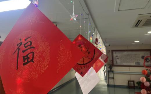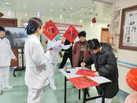镜头里,患者与医护人员举着刚写好的“福”字,笑靥与红底墨字相映成趣,输液管线的细影裹着温柔的烟火气,病房里的绿植与装饰花也似染上了笑意。一位患者捧着福字说:“本来以为住院会错过小年的热闹,没想到在这里收到这么贴心的祝福,心里暖和极了!”