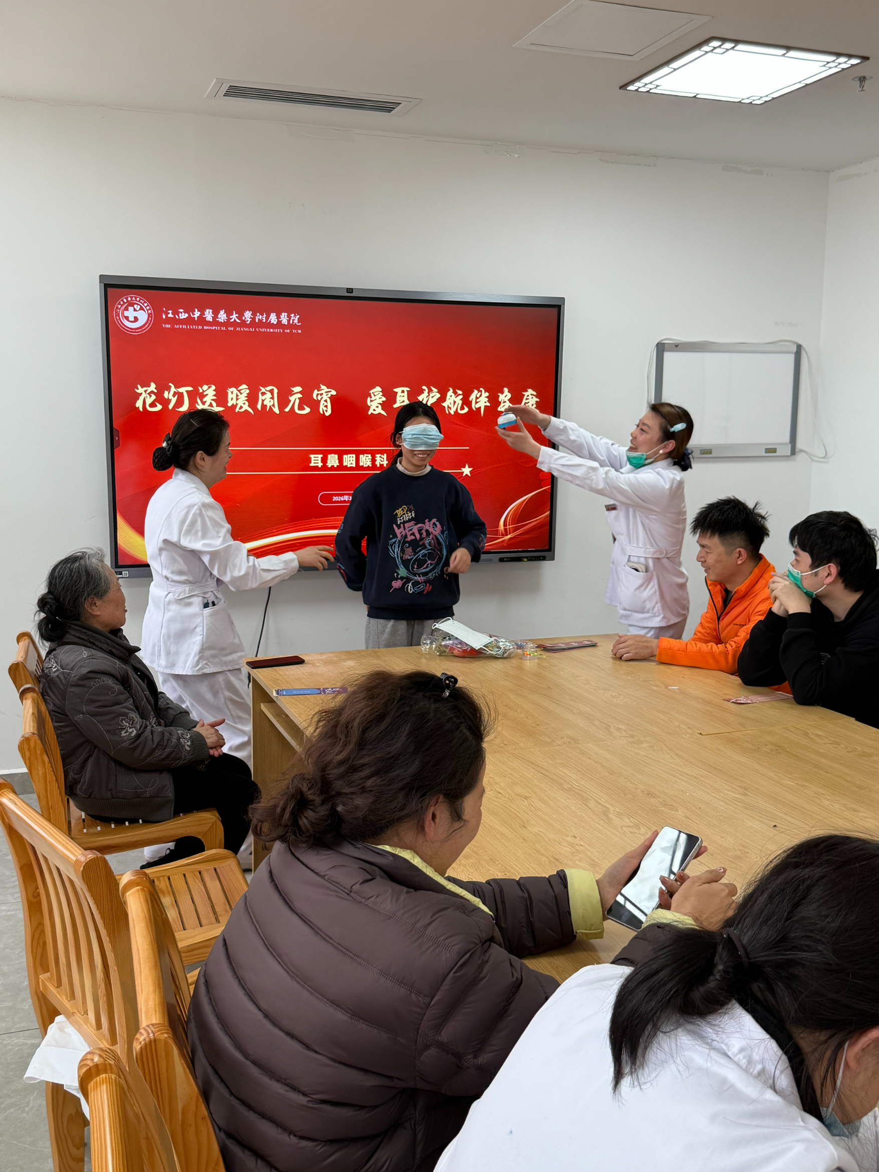 元宵佳节,耳鼻咽喉科护士与患者温情互动,通过悦耳轻操手把手教学、听令争先趣味抢答、唇语传声无声体验、闻声辨位听觉游戏、灯谜知护健康竞猜等五大沉浸式环节,将护耳知识融入节日烟火。患者在欢声笑语中学习保健技能,在互动体验中感受医者仁心,真正实现了“娱乐+科普”的双向奔赴。
